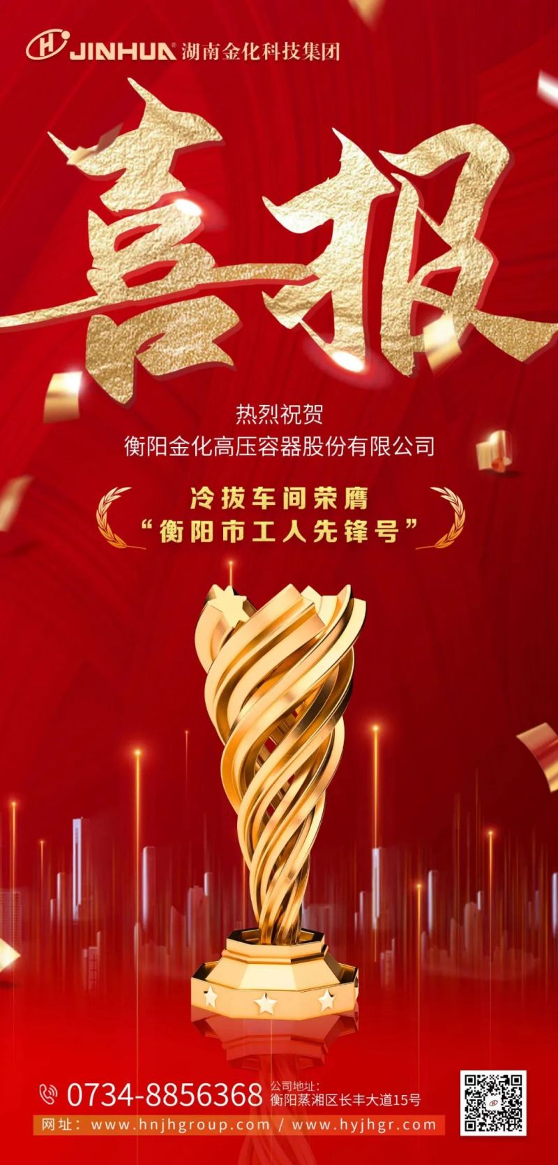 喜報(bào)|熱烈祝賀衡陽金化高壓容器股份有限公司冷拔車間榮膺“衡陽市工人先鋒號(hào)”