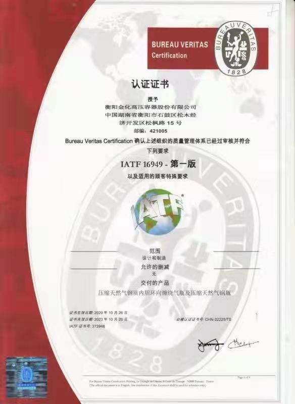 IATF TS16949 認(rèn)證證書(有效日期:2020.10.26-2023.10.25)中文版